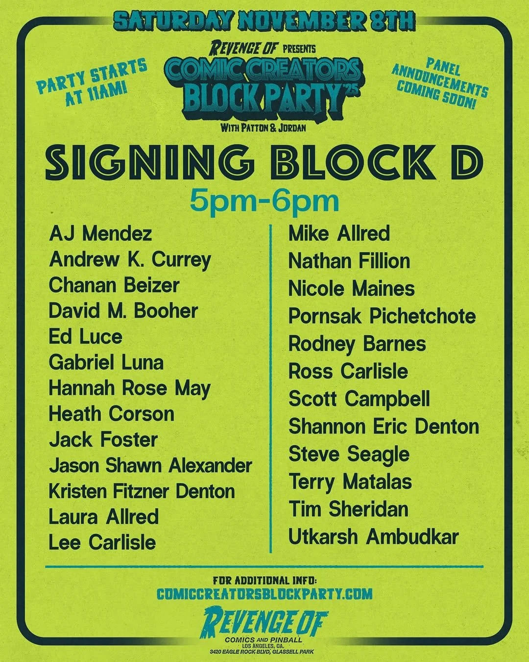 Saturday, November 8th at 5pm - 6pm (Event is 11am - 6pm): Creator Con at Revenge Of!